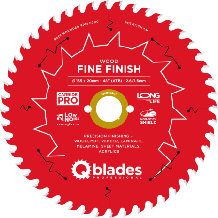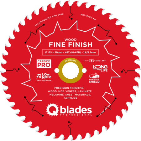 QCZ16503T – Lame de scie circulaire – Ø 165 × 20mm – 48T HI-ATB – 1.8/1.2mm – Sans fil