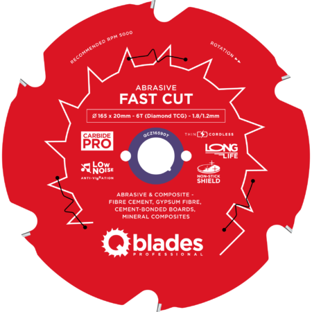 QCZ16590T – Lame de scie circulaire – Ø 165 × 20mm – 6T Diamond TCG – 1.8/1.2mm – Sans fil