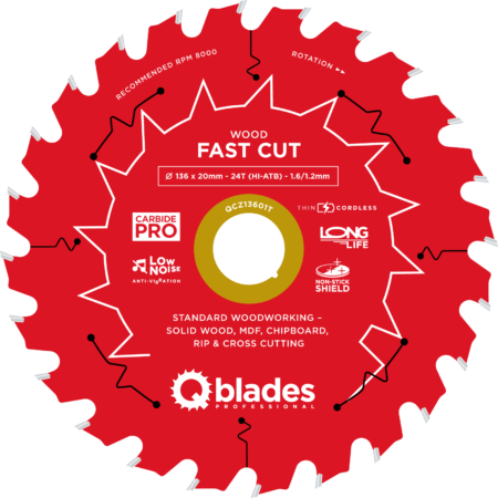 QCZ13601T – Cirkelzaagblad – Ø 136 × 20mm – 24T ATB – 1.6/1.2mm – Cordless