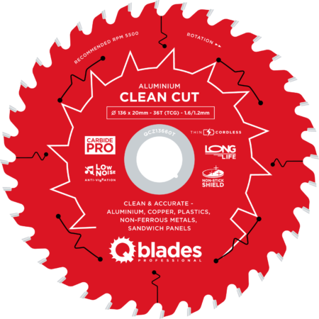 QCZ13660T – Cirkelzaagblad – Ø 136 × 20mm – 36T TCG – 1.6/1.2mm – Cordless