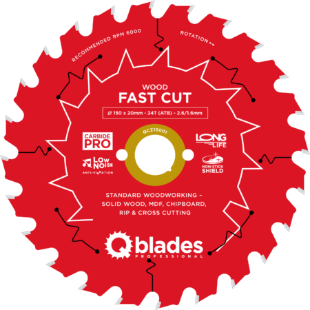 QCZ15001 – Cirkelzaagblad – Ø 150 × 20mm – 24T ATB – 2.6/1.6mm