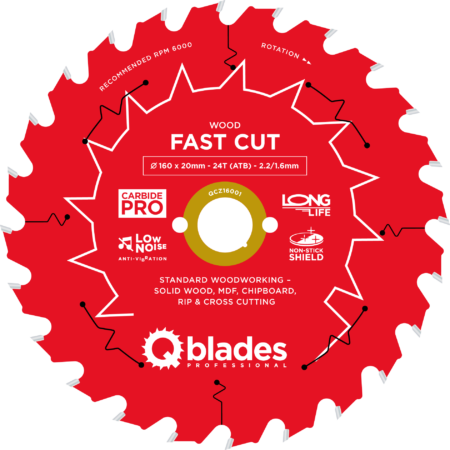 QCZ16001 – Cirkelzaagblad – Ø 160 × 20mm – 24T ATB – 2.2/1.6mm