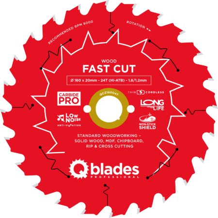 QCZ16004T – Cirkelzaagblad – Ø 160 × 20mm – 24T HI-ATB – 1.8/1.2mm – Cordless