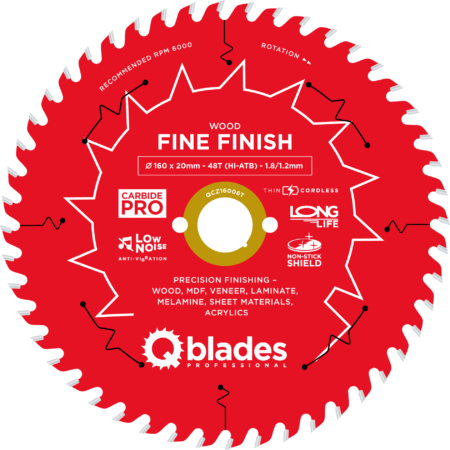 QCZ16006T – Cirkelzaagblad – Ø 160 × 20mm – 48T HI-ATB – 1.8/1.2mm – Cordless