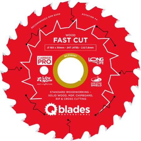 QCZ16007 – Cirkelzaagblad – Ø 160 × 30mm – 24T ATB – 2.6/1.6mm