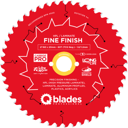 QCZ16020T – Cirkelzaagblad – Ø 160 × 20mm – 60T TCG Neg. – 1.8/1.2mm – Cordless