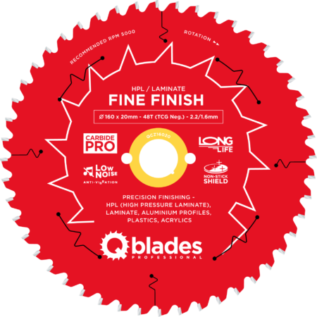 QCZ16020 – Cirkelzaagblad – Ø 160 × 20mm – 48T TCG Neg. – 2.2/1.6mm