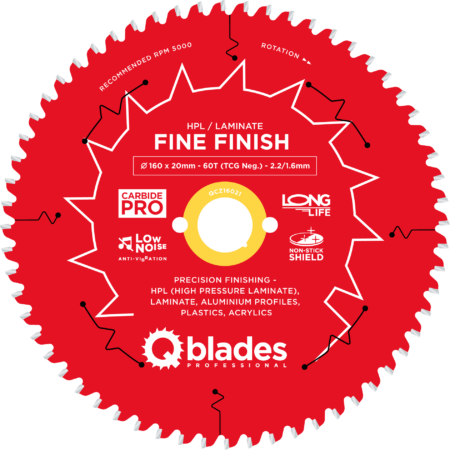 QCZ16021 – Cirkelzaagblad – Ø 160 × 20mm – 60T TCG Neg. – 2.2/1.6mm